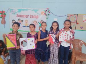 शिविर में सभी बच्चों को कलर पेपर ,चार्ट पेपर ,ग्लू स्टिक स्केच ,पेन्सिल ,फेविकोल, रुई ,रंगीन धागे और सजावट की विभिन्न क्रियात्मक सामग्री प्रदान की गई। इनसे बच्चे अनेकों प्रकार के खूबसूरत फूल,पत्ते, गमले, चिड़िया का घर, अक्षर, वॉल हैंगिंग, गुलदस्ते, साइंस मॉडल आदि बनाना सीखा। इसके साथ ही म्यूजिक के साथ डांस और सरल योग स्टेप आदि के द्वारा बच्चों का शारीरिक ,मानसिक ,नैतिक व सामाजिक विकास का एक सर्वांगीण प्रयास किया गया।