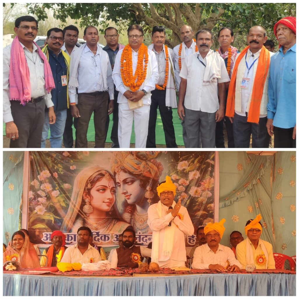 तिल्दा नेवरा :– यादव समाज का एक दिवसीय यादव सम्मेलन प्रतिभा सम्मान एवं आदर्श विवाह प्रसिद्ध धार्मिक स्थल सोमनाथ धाम में सम्पन्न,छत्तीसगढ़ झेरिया यादव समाज सोमनाथ परिक्षेत्र का एक दिवसीय यादव सम्मेलन प्रतिभा सम्मान एवं आदर्श विवाह कार्यक्रम छत्तीसगढ़ की प्रसिद्ध धार्मिक नगरी सोमनाथ धाम में गरिमामय समारोह के साथ आयोजित किया गया,इस कार्यक्रम के मुख्य अतिथि जगनीक यादव प्रदेश अध्यक्ष छत्तीसगढ़ झेरिया यादव समाज थे। कार्यक्रम की अध्यक्षता जिला रायपुर अध्यक्ष रामलाल यादव ने किया। विशेष अतिथि के रूप में सुंदरलाल यादव प्रदेश सचिव हेमकांत यादव जिला अध्यक्ष बेमेतरा शत्रुघ्न यदु जनपद सदस्य श्यामा बाला साहू सरपंच ग्राम पंचायत लखना सावित्री यादव अध्यक्ष सोमनाथ परिश्रेत्र महिला प्रकोष्ठ तिलक यादव कार्यकारी अध्यक्ष जिला रायपुर शत्रुघ्न यादव वरिष्ठ उपाध्यक्ष रायपुर महानगर ईकाई सुंदर यादव अध्यक्ष रांका परिक्षेत्र ,सहदेव यादव अध्यक्ष पथरी गढ़ ,यशपाल यादव अध्यक्ष गोढ़ी परिक्षेत्र , भोलाराम यादव अध्यक्ष खरोरा परिक्षेत्र ,अर्जुन यादव सचिव पथरी गढ़ , रोशन यादव सचिव गोढ़ी परिक्षेत्र नीलकंठ यादव सचिव खल्लारी परिश्रेत्र मालिक राम यादव कोषाध्यक्ष खल्लारी परिक्षेत्र थे,कार्यक्रम में समाज के प्रतिभाशाली छात्र छात्राओं एवं यादव समाज के जनप्रतिनिधियों का सम्मान किया गया एवं एक जोड़ी आदर्श विवाह में शामिल नव दंपती को समाज द्वारा आशीर्वाद प्रदान किया,कार्यक्रम को संबोधित करते हुए मुख्य अतिथि जगनीक यादव ने कहा यादव समाज एक मजबूत और मेहनत कश समाज है। हमें अपने समाज के संस्कार को जिवित रखना है। उन्होंने कहा शिक्षा समाज का दर्पण है।