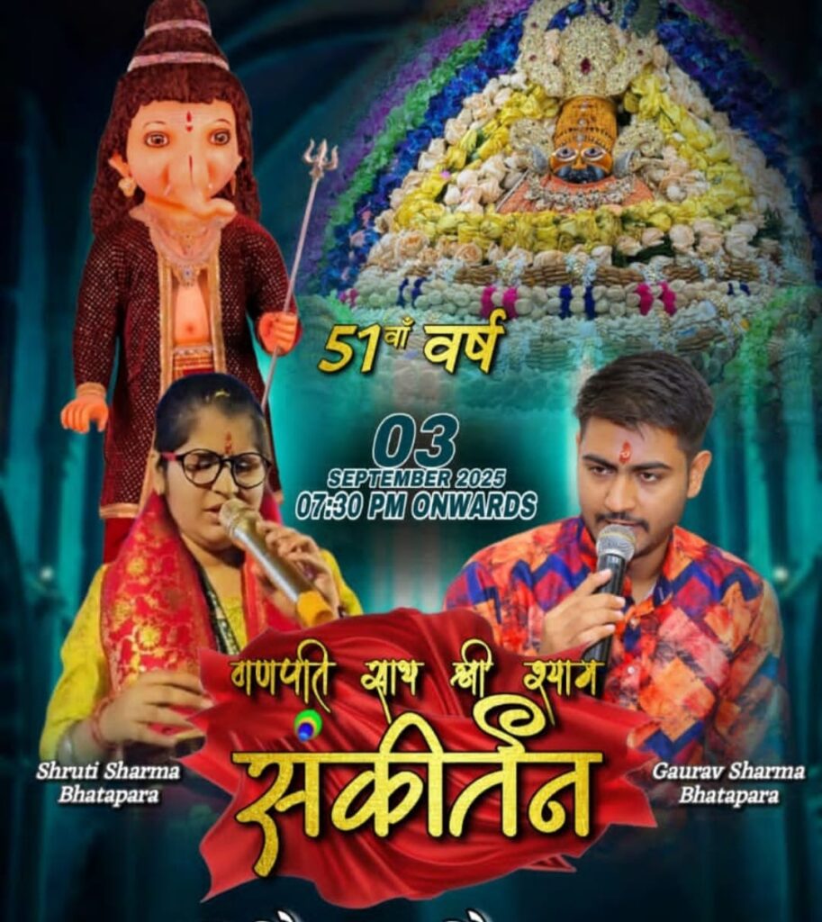 कार्यक्रम की शुरुआत गणपति बप्पा की भव्य आरती से किया जाएगा, जिसके बाद भजन संध्या और श्याम संकीर्तन का आयोजन किया जा रहा है। खाटू श्याम के भजनों की मधुर प्रस्तुतियों भाटापारा के कलाकारों के द्वारा भक्तों को भक्ति रस में सराबोर कर देंगे। उपस्थित श्रद्धालु देर रात तक भजनों का आनंद लेंगे और “श्याम नाम” की गूंज से चौक का वातावरण भक्तिमय हो जाएगा गांधी चौक गणेश उत्सव समिति के अध्यक्ष आदित्य गुप्ता ने बताया कि पिछले 51 वर्षों से गांधी चौक में गणेश उत्सव निरंतर आयोजित होता आ रहा है और यह आयोजन अब एक धार्मिक-सांस्कृतिक परंपरा का रूप ले चुका है। इस अवसर पर नगर के वरिष्ठजन, युवाओं एवं महिलाओं ने बढ़-चढ़कर भागीदारी दे रहे हैं