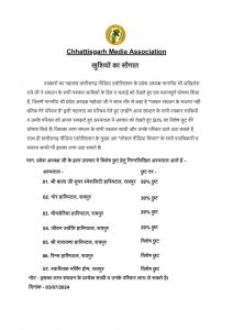 तिल्दा नेवरा छत्तीसगढ़ मिडिया एसोसियेशन की पहल पर पत्रकारों के हित में विभीन्न निर्णय लिये जा रहे हैं , इसी के तहत छत्तीसगढ़ मिडिया एसोसियेशन के प्रदेश अध्यक्ष अखिलेश रात्रे ने स्वास्थ्य के मामले पर गंभीरता बरतते हुए एक बड़ी घोषणा किया है। छत्तीसगढ़ मिडिया एसोसियेशन के प्रदेश अध्यक्ष अखिलेश रात्रे ने कहा कि छत्तीसगढ़ मिडिया एसोसियेशन के पदाधिकारी , सदस्य मेरा परिवार है। उनके हित में सोचना मेरा महती कर्तव्य है । और इसी के चलते उन्होंने स्वास्थ्य सुविधा को ध्यान में रखते हुए निजी हास्पीटलो में इलाज के खर्च पर रियायत की घोषणा किया है। घोषणा के अनुसार राजधानी रायपुर के भी मल्टीस्पेशलिस्ट हास्पीटल भी शामिल हैं जिनमें बालाजी सुपर स्पेशलिस्ट हास्पीटल रायपुर ,मोर हास्पिटल भीमसेरिया हास्पीटल, जीवन ज्योति हास्पीटल,श्री नारायणा हास्पीटल,रीम्स हास्पीटल ,स्वास्तीक नर्सिंग होम आदि शामिल हैं। जहां पर इलाज के खर्च पर रियायत बरती जावेगी । उक्त हास्पीटल में छत्तीसगढ़ मिडिया एसोसियेशन के पत्रकार एवं उनके परिवार रियायत दर पर इलाज करवा सकते हैं।