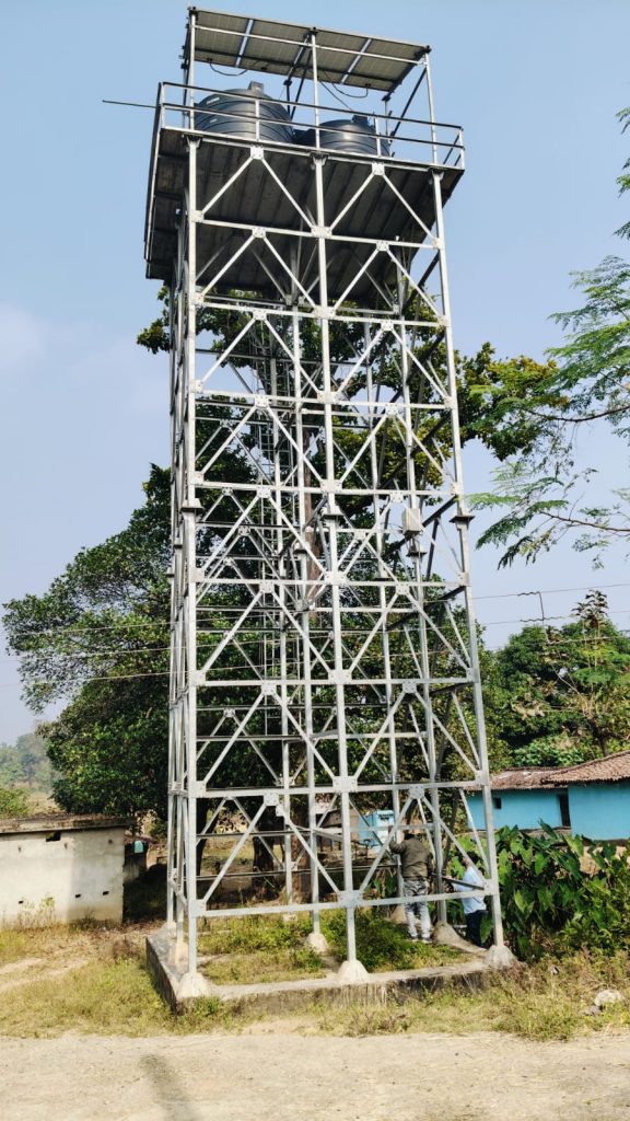 जशपुरनगर/ मुख्यमंत्री विष्णुदेव साय के निर्देशानुसार जिले में जल जीवन मिशने के कार्यो में तीव्रता आई है। डांडपानी झारखण्ड सीमा से लगा हुआ ग्राम है जिसमें जल जीवन मिशन द्वारा कुल चार सोलर एकल ग्राम योजना स्थापित की गई है जिसके माध्यम से 137 क्रियाशील घरेलु नल में जल दिया जा रहा है एवं कुल 143 एफएचटीसी में जल की आपूर्ति की जानी है हर एक योजना में 5000 ली. के 2 टंकी यानी 10000 लीटर की टंकी स्थापित की गई है।