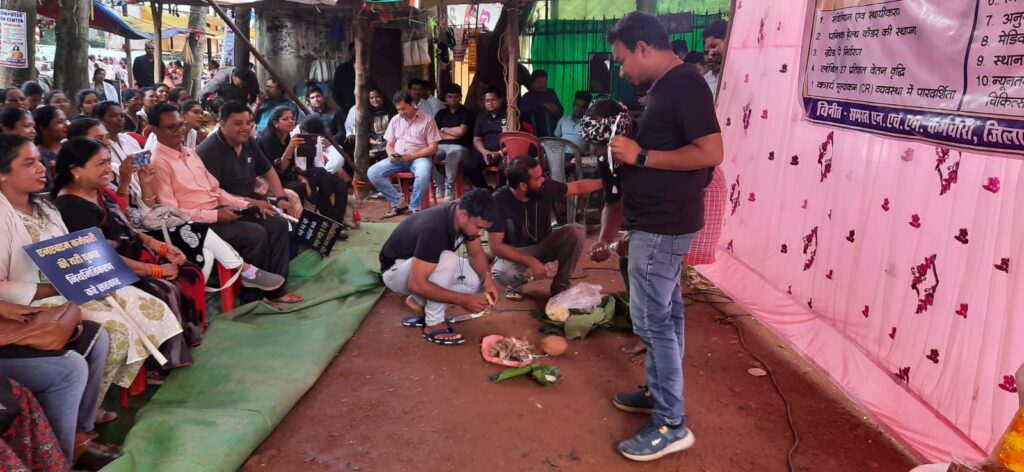 धरना स्थल पर आज कर्मचारियों ने छत्तीसगढ़ की पारंपरिक झाड़-फूंक पद्धति का सहारा लेते हुए अनोखा प्रदर्शन किया। उनका कहना था कि यह प्रतीकात्मक प्रदर्शन मुख्यमंत्री विष्णु देव साय, स्वास्थ्य मंत्री श्याम बिहारी जायसवाल, वित्त मंत्री ओ. पी. चौधरी और स्वास्थ्य विभाग के जिम्मेदार अधिकारियों को “नींद से जगाने” का प्रयास है।
