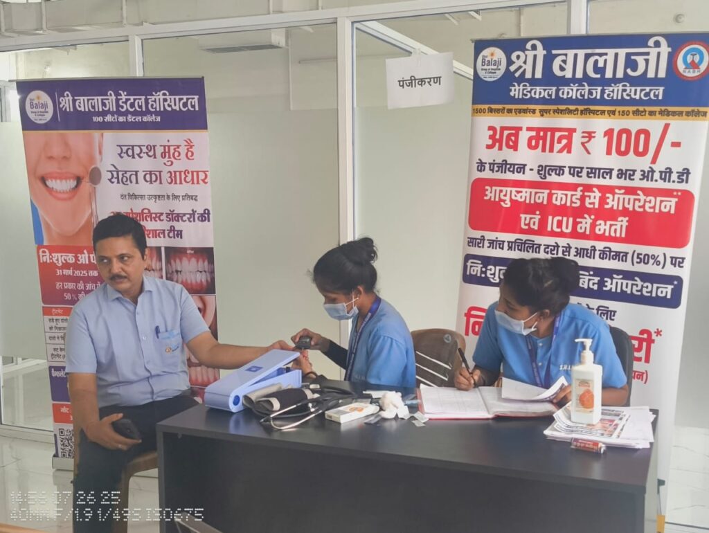 श्री बालाजी मेडिकल फाउंडेशन, एवं आहुजा ऑटोमोबाइल (अशोक लेलैंड)के संयुक्त तत्वाधान में एक दिवसीय निःशुल्क स्वास्थ्य जांच शिविर, शोरूम परिसर में आयोजित किया गया। जिसमें लोगों ने बढ़-चढ़कर हिस्सा लिया और विशेषज्ञ चिकित्सकों से अपनी स्वास्थ्य संबंधित समस्याओं पर चर्चा कर परामर्श प्राप्त किया। जिसमें जनरल मेडिसिन विभाग से डॉ धनेन्द्र साहू, नेत्र रोग विभाग की डॉ हरप्रिया और तथा दंत विभाग से डॉ चांदनी अग्रवाल, अस्पताल जन संपर्क विभाग से चंद्रकांत श्रीवास, आकाश, देवेन्द्र डबली, नर्सिंग स्टाफ सरस मंडावी, दिनेश्वरी ध्रुव एवं आहुजा ऑटोमोबाइल शो रूम से जनरल मैनेजर एवं एच आर हेड – राजीव श्रीवास्तव, कारण जीत – सर्विस मैनेजर , अरुण हरपाल – सर्विस हेड, एवं अन्य आहुजा ऑटोमोबाइल (अशोक लेलैंड) के कर्मचारि गण उपस्थित रहे । शिविर में बी.पी, ब्लड शुगर, जनरल मेडिसिन, नेत्र रोग, दंत रोग के मरीजों का निःशुल्क जांच कर परामर्श प्रदान किया गया। आयोजकों ने श्री बालाजी हॉस्पिटल में संचालित योजनाओं जिनमें मुख्य रूप से नि:शुल्क डिलीवरी, निःशुल्क मोतियाबिंद ऑपरेशन हेतू अस्पताल का एवं नि: शुल्क स्वास्थ्य शिविर आयोजित करने हेतू समस्त टीम का आभार व्यक्त किया।