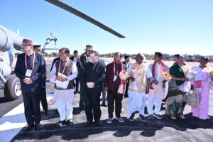 जशपुरनगर, राष्ट्रपति द्रौपदी मुर्मू का जशपुर आगडीह हवाई पट्टी आगमन पर छत्तीसगढ़ के राज्यपाल रमेन डेका, झारखंड के राज्यपाल संतोष कुमार गंगवार, मुख्यमंत्री छत्तीसगढ़ शासन विष्णुदेव साय कृषि मंत्री रामविचार नेताम, सांसद चिन्तामणी महाराज, सांसद राधेश्याम राठिया, सरगुजा आदिवासी विकास प्राधिकरण की उपाध्यक्ष और पत्थलगांव विधायक गोमती साय,जशपुर विधायक रायमुनी भगत, विधायक पुरन्दर मिश्रा, कमिश्नर सरगुजा नरेन्द्र दुग्गा ,आईजी दीपक कुमार झा, कलेक्टर रोहित व्यास, एस एस पी शशि मोहन सिंह ने आत्मीय स्वागत किया।