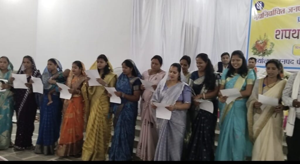 सक्ती। लोकतंत्र में कब किसका किस्मत बदल जाए इसका अंदाजा लगा पाना मुश्किल है, लोकतंत्र की यही खूबसूरत तस्वीर जैजैपुर जनपद पंचायत के अध्यक्ष के शपथ ग्रहण समारोह में देखने को मिला। सद्भावना भवन जैजैपुर में आयोजित शपथ ग्रहण कार्यक्रम में जब जनपद के नव निर्वाचित अध्यक्ष पुष्पा परदेशी खूंटे ने जैसे ही अध्यक्ष पद के लिए शपथ लिया वैसे ही हाल में बैठे सभी जनपद सदस्यों के अलावा कार्यक्रम में मौजूद अतिथिगण,जनता ने ताली बजाकर उनका स्वागत किया। आपको बता दें, जनपद पंचायत सदस्य के रूप में पुष्पा खूंटे ने बतौर जनपद सदस्य के रूप में जीत हासिल की थी। लेकिन जनपद पंचायत जैजैपुर में अध्यक्ष का पद एस सी महिला के लिए आरक्षित होने के चलते भारतीय जनता पार्टी ने उन्हें जनपद अध्यक्ष के रूप में अपना समर्थित प्रत्याशी घोषित किया था, और पुष्पा खूंटे ने एकतरफा जीत हासिल करते हुए जनपद अध्यक्ष बनी है। इसके साथ उपाध्यक्ष के लिए सीताराम चंद्रा ने भाजपा के समर्थन से चुनाव जीता है। आज हुए शपथ ग्रहण कार्यक्रम में जनपद पंचायत क्षेत्र के सभी जनपद सदस्यों के अलावा भाजपा जिलाध्यक्ष टिकेश्वर गबेल,कृष्णकांत चंद्रा, गोपीसिंह ठाकुर,कीर्तन चंद्रा, पूर्व नगर पंचायत अध्यक्ष सोनसाय देवांगन ,पूर्व नगर पंचायत अध्यक्ष महेंद्र चंद्रा, भूषण चंद्रा, सचिन सिंह,भगवान दास किशोर, सुखदेव खुटे सहित बड़ी संख्या में भाजपा कार्यकर्ता उपस्थित रहे।