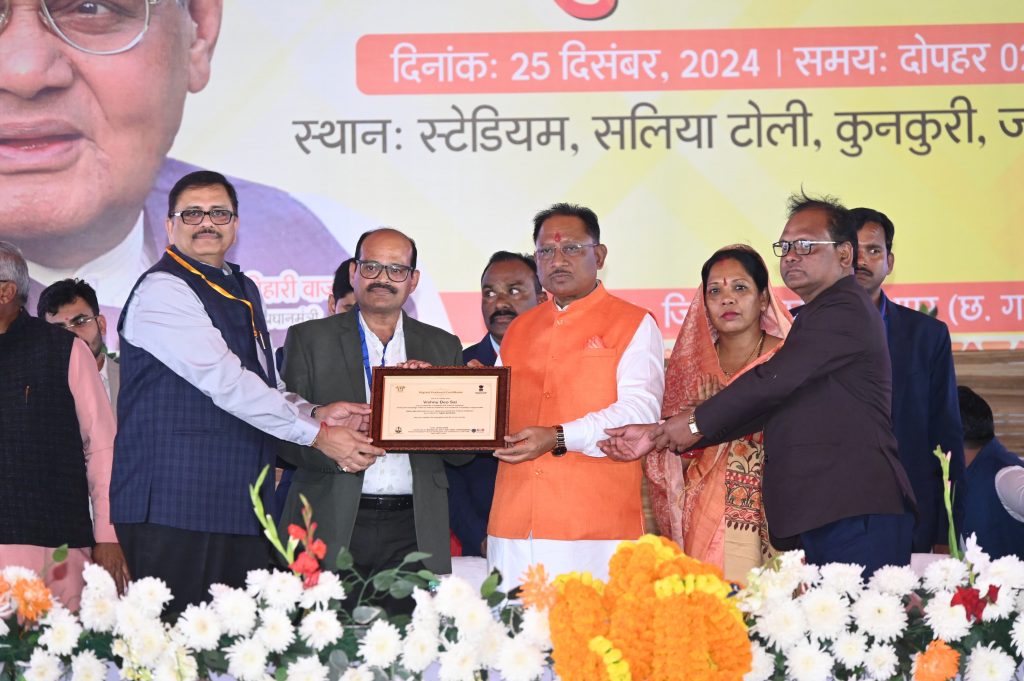 जशपुरनगर, मुख्यमंत्री विष्णुदेव साय पूर्व प्रधानमंत्री एवं भारत रत्न स्वर्गीय अटल बिहारी वाजपेयी के जन्म दिवस, सुशासन दिवस के अवसर पर आज कुनकुरी के सलियाटोली में आयोजित अटल सुशासन समारोह में शामिल हुए। मुख्यमंत्री ने अटल बिहारी बाजपेई के चित्र पर दीप प्रज्वलित और माल्यार्पण कर कार्यक्रम की शुरुआत की। इस अवसर पर उन्होंने स्वर्गीय अटल बिहारी बाजपेई के योगदान को याद करते हुए कहा कि छत्तीसगढ़ राज्य के निर्माता भारत रत्न पूर्व प्रधानमंत्री स्वर्गीय अटल बिहारी बाजपेई जिस उद्देश्य से छत्तीसगढ़ राज्य को बनाया, वो आज फलीभूत हो रहा है और यह तेजी से विकास की राह पर आगे बढ़ रहा है। मुख्यमंत्री ने इस अवसर पर कुनकुरी और जशपुर में आडिटोरियम निर्माण करने सहित कई घोषणाएं भी की। इसके साथ ही मुख्यमंत्री ने 163 नगरीय निकायों में अटल परिसर का भूमिपूजन वीडियो कांफ्रेंसिंग के माध्यम से किया। उप मुख्यमंत्री अरुण साव बिल्हा से वर्चुअली शामिल हुए।