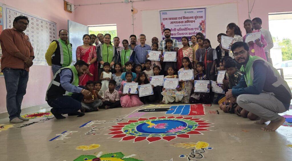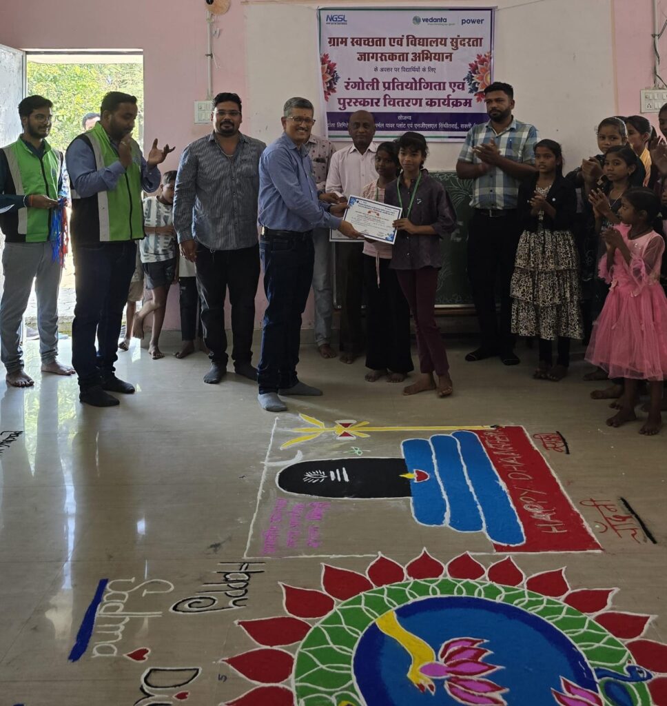 सिंघीतराई, वेदांता लिमिटेड छत्तीसगढ़ थर्मल पावर प्लांट (व्हीएलसीटीपीपी) ने अपने सामुदायिक विकास कार्यक्रम के अंतर्गत ग्राम निमोही स्थित स्कूल के छात्र-छात्राओं के लिए रंगोली स्पर्धा आयोजित की। ‘हमारा गांव स्वच्छ गांव, हमारा विद्यालय सुंदर विद्यालय’ थीम पर आयोजित प्रतियोगिता में प्राथमिक और माध्यमिक स्तर की कुल 11 टीमों ने भागीदारी की। प्रथम, द्वितीय एवं तृतीय स्थान प्राप्त करने वाले विद्यार्थियों को प्रोत्साहन स्वरूप मेडल और प्रशस्ति पत्र प्रदान किए गए। कार्यक्रम के मुख्य अतिथि व्हीएलसीटीपीपी के ऑपरेशन एवं मेंटेनेंस प्रमुख सुशीम बेहरा और उपस्थित जन प्रतिनिधियों ने विद्यार्थियों की बेहतरीन रचनात्मकता के लिए उनकी खूब हौसला अफजाई की।
