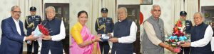 रायपुर। राज्यपाल विश्वभूषण हरिचंदन से आज राजभवन में विभिन्न विश्वविद्यालय के कुलपतियों ने सौजन्य भेंट की। मुलाकात करने वालों में पं. सुंदरलाल शर्मा(मुक्त) विश्वविद्यालय, बिलासपुर के कुलपति डॉ. बंश गोपाल सिह, इंदिरा कला संगीत विश्वविद्यालय, खैरागढ़ की कुलपति मोक्षदा (ममता) चंद्राकर और कुशाभाऊ ठाकरे पत्रकारिता एवं जनसंचार विश्वविद्यालय रायपुर के कुलपति डॉ. बलदेव भाई शर्मा शामिल थे।